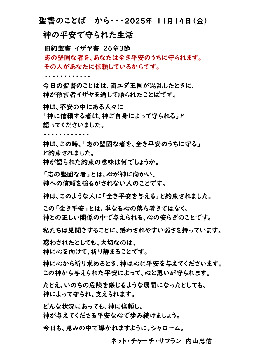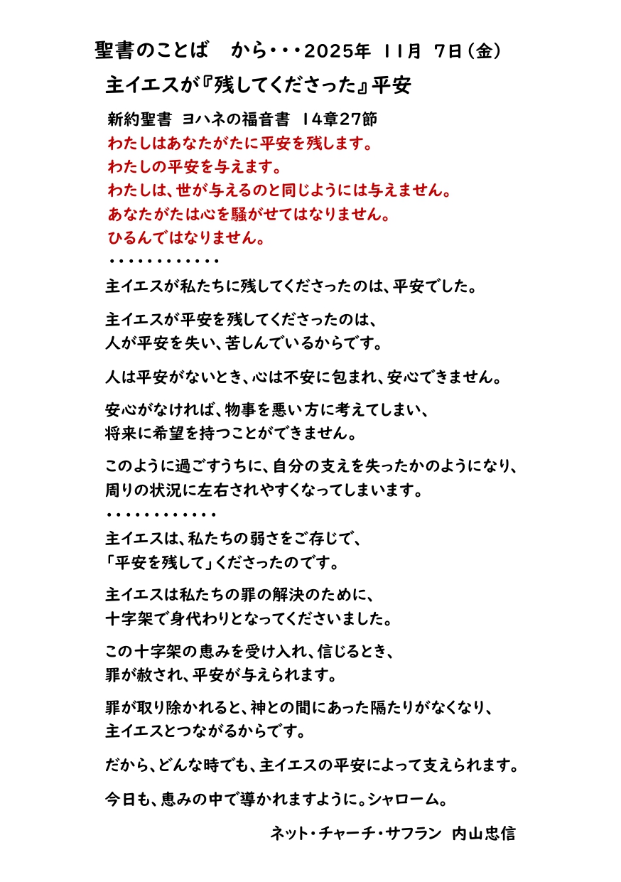 2025年11月7日(金)聖書のことば から・・・