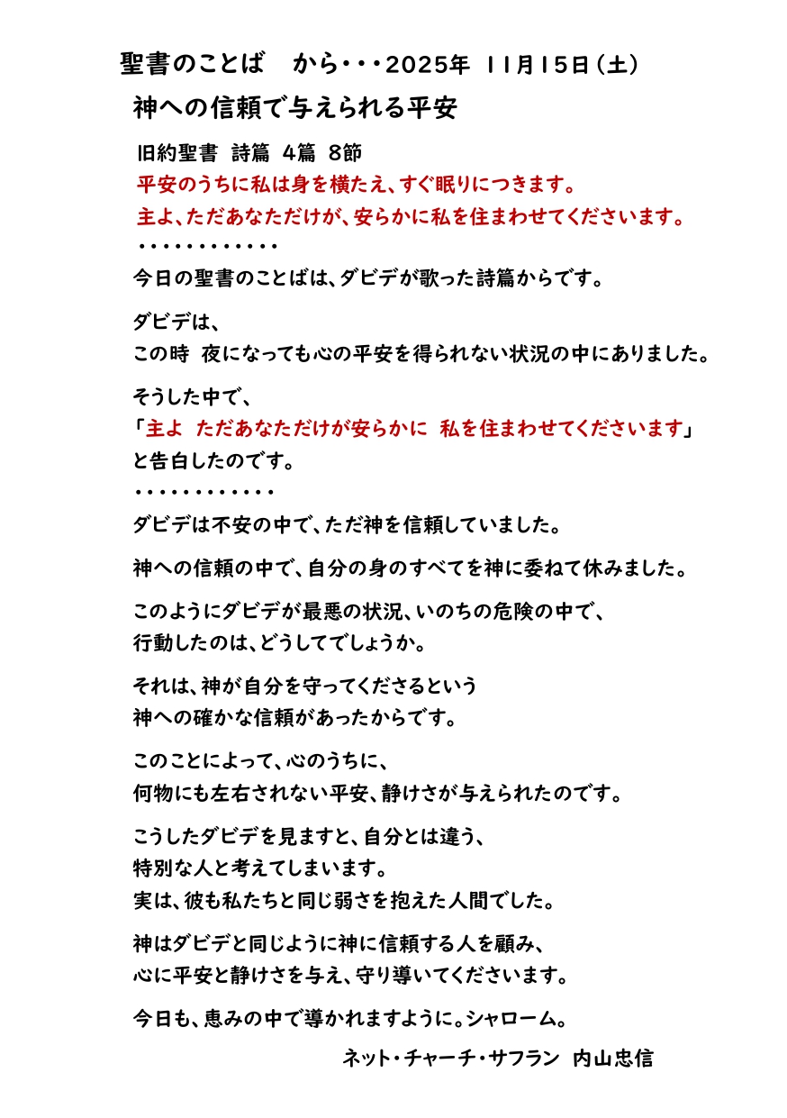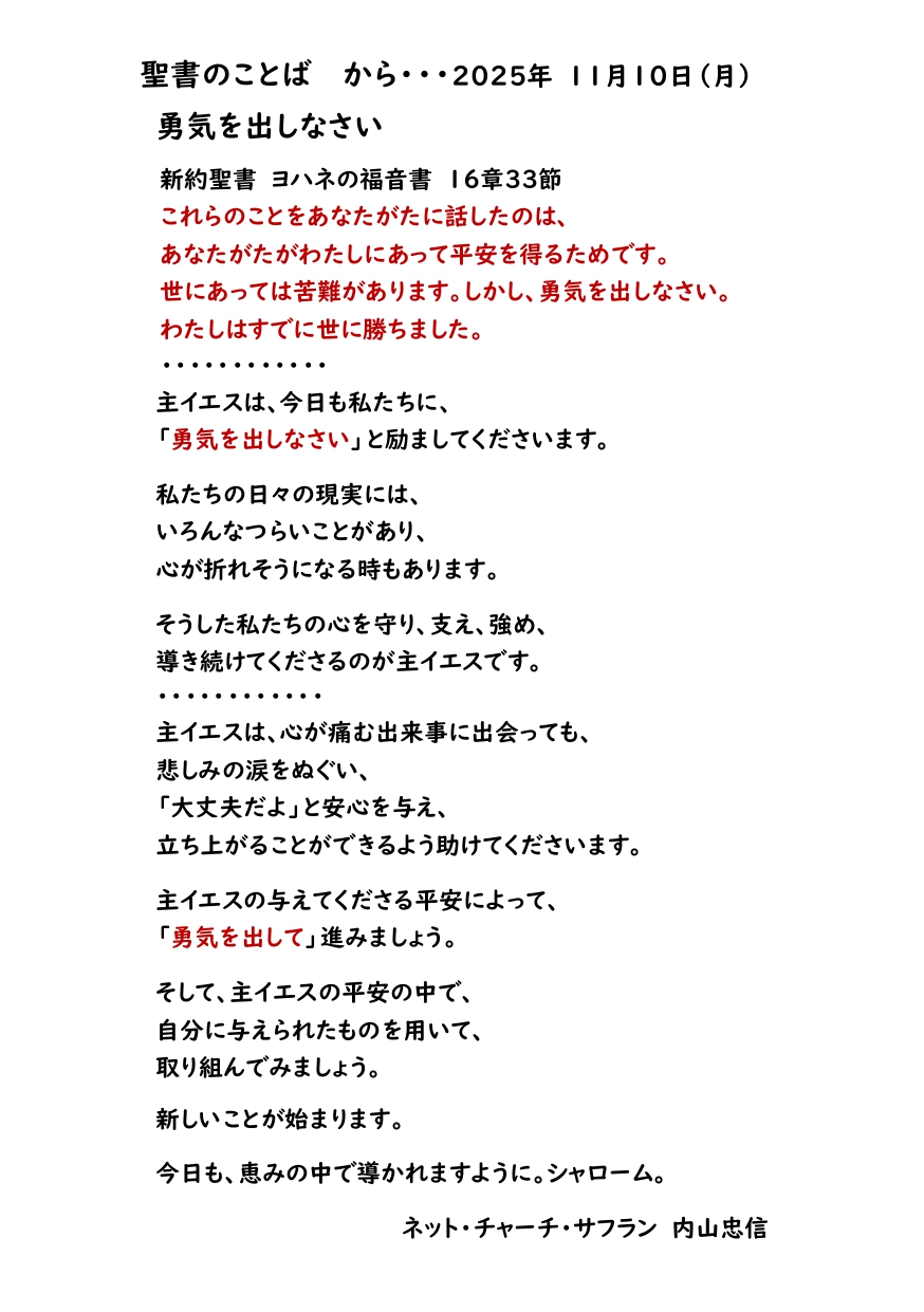 2025年11月10日(月)聖書のことば から・・・
