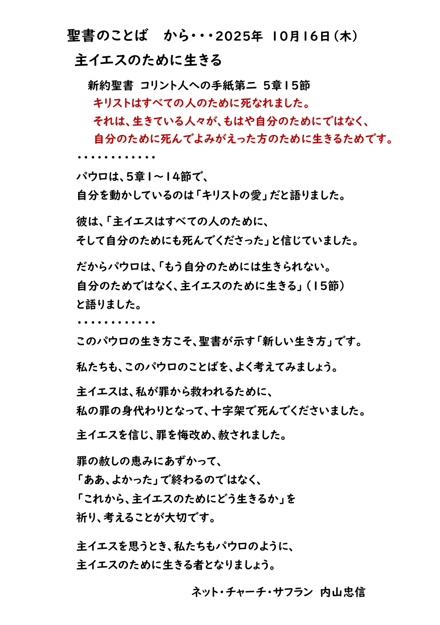 2025年10月16日(木)聖書のことば から・・・