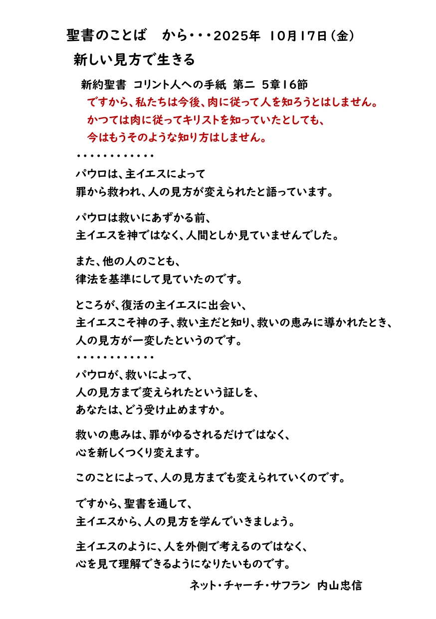 2025年10月17日(金)聖書のことば から・・・