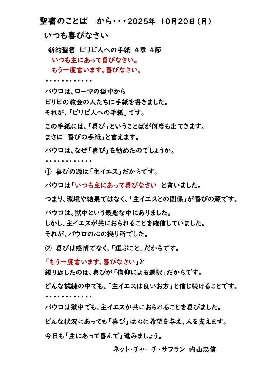 2025年10月20日(月)聖書のことば から・・・